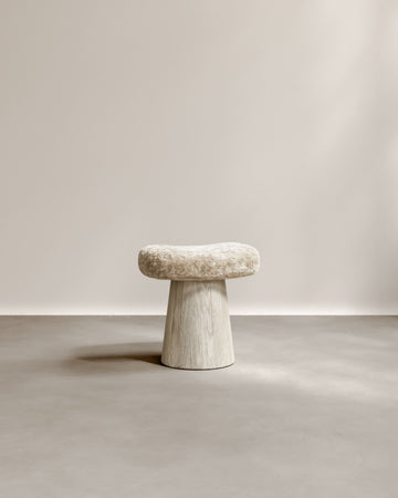 Each stool is meticulously hewn from select French oak and upholstered in your choice of exquisite materials. Choose between European-milled natural textiles for a refined finish or luxurious, 100% ethically sourced New Zealand shearling for unmatched comfort and texture.