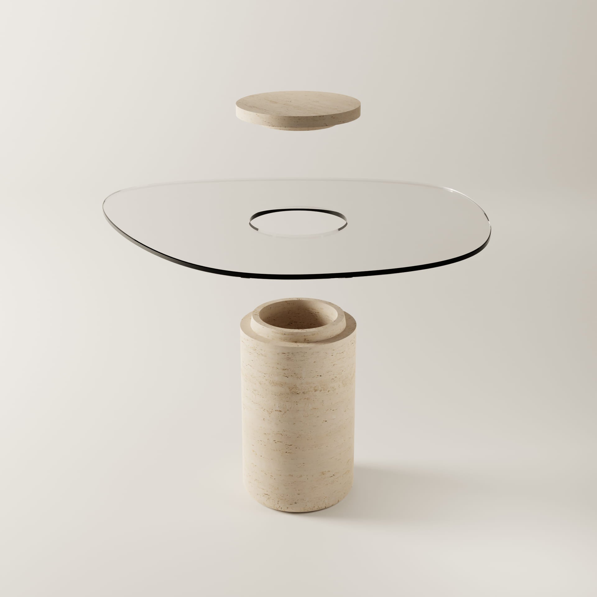 Each UUFO table is produced as a singular work, ensuring the inherent movement, veining, and texture of the Carrara-sourced travertine are preserved and highlighted. Despite its high-impact presence, the table maintains a compact footprint, making it a versatile choice for luxury residential dining areas, boutique hospitality suites, or curated gallery corners.